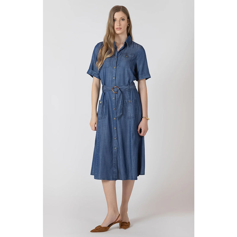 Make a statement with this chic black utility midi dress that combines function with fashion. The integrated belt defines your waist while the lightweight denim fabric keeps you comfortable all day long. Button-up styling adds practical appeal and allows for easy layering, making this dress a go-to piece for any occasion. Whether you're running errands or meeting friends, this versatile dress delivers effortless style that works as hard as you do.