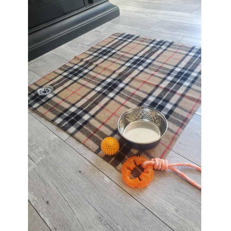 Our Barkingtosh dog blankets are produced with 75% recycled wool and 25% nylon making your dog blanket very durable for you beloved pet. We have removed the fringes and used a blanket stitch around the curved corners.