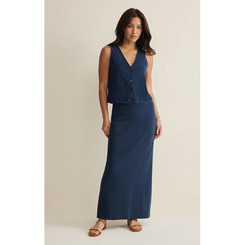Effortlessly stylish, this body-skimming midi skirt combines a classic denim look with the softness of cotton jersey. Designed with an elastic waistband for a comfortable fit, it’s a versatile essential you’ll reach for again and again.