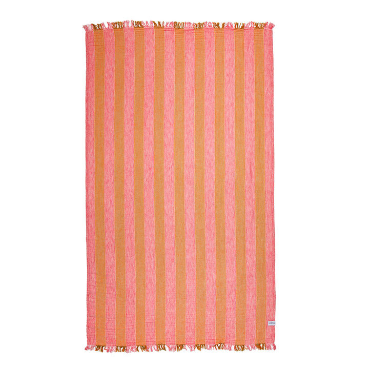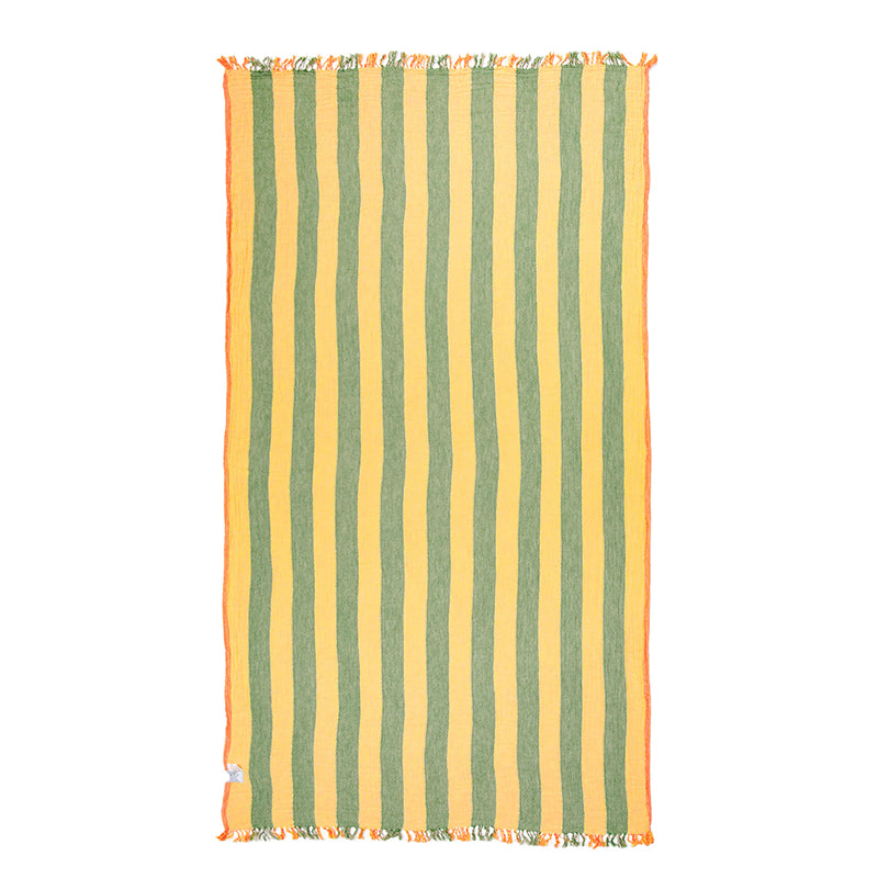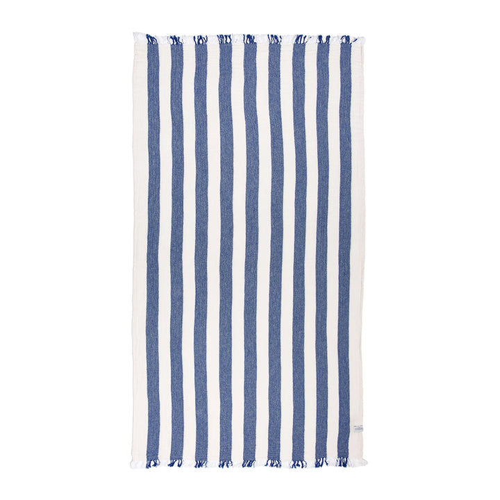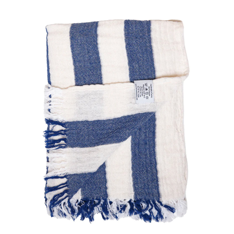 The Banks gauze muslin gauze Turkish towel adds a modern twist to the timeless stripe design. With its cheeky over-the-shoulder wink, this towel is sure to turn heads at the beach, park, or any other destination. Made from 100% Turkish muslin gauze cotton, it is not only cute but also incredibly soft, absorbent, quick-drying, and environmentally friendly. A must-have for any beach or outdoor outing.