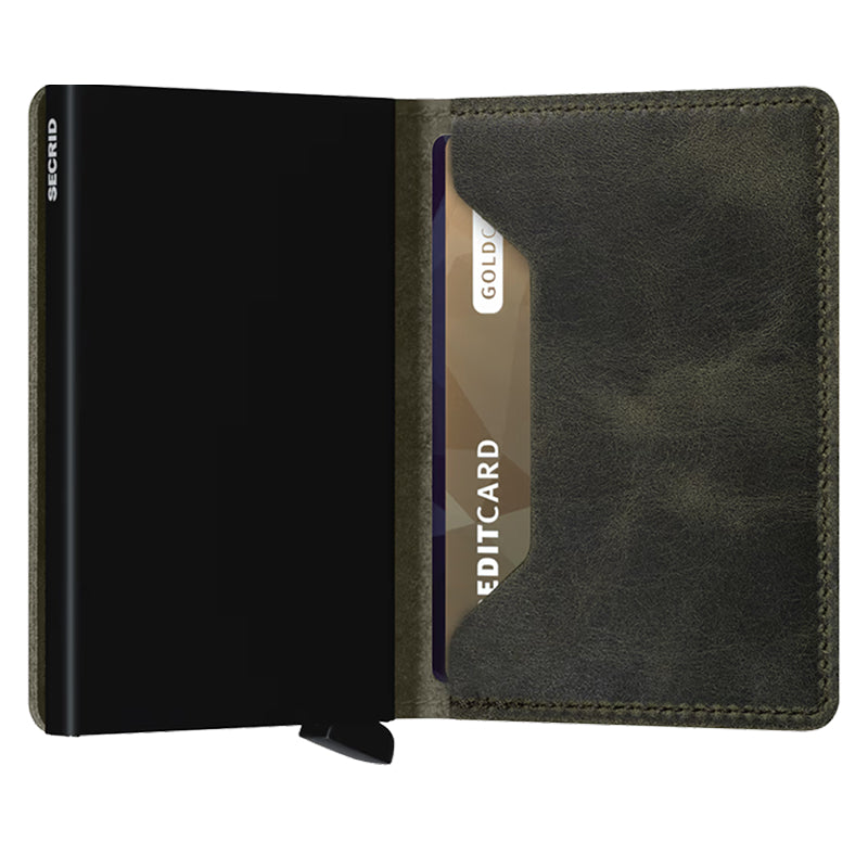 The Slimwallet's open exterior wrap does not feature a button or magnet closure system.