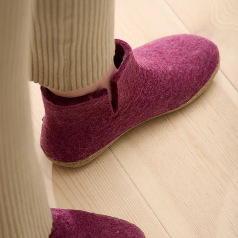 Experience the warmth of Danish heritage with Glerups Boot, handcrafted from ethically sourced 100% natural wool that's gentle on sensitive skin. The ankle-height design delivers exceptional insulation while moisture-wicking properties keep your feet dry and comfortable throughout the day. Designed to be worn barefoot, these boots bridge the gap between chilly floors and heavy outerwear, making them perfect for indoor living, patios, RVs, and camping adventures. Durable leather soles provide reliable traction for everyday wear, while the rich cranberry hue brings nature-inspired colour to your comfort routine. Discover why wool felt remains the ultimate choice for cozy, sustainable footwear.