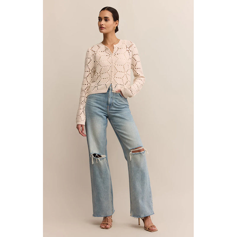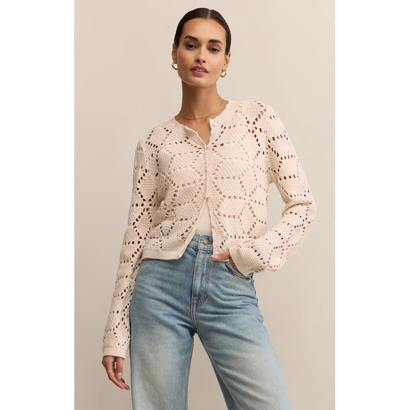 This lightweight cotton crochet cardigan features a delicate open-knit design that brings texture and a touch of feminine elegance. With its relaxed silhouette and soft feel, it’s an ideal layering piece for effortless style throughout the seasons.
