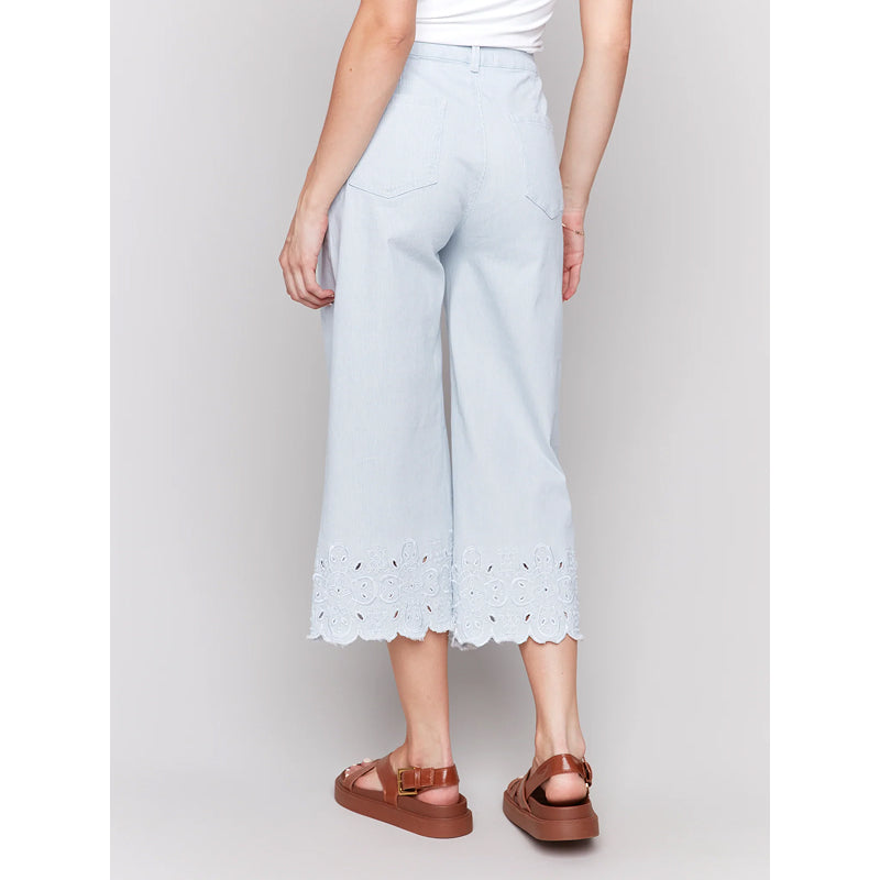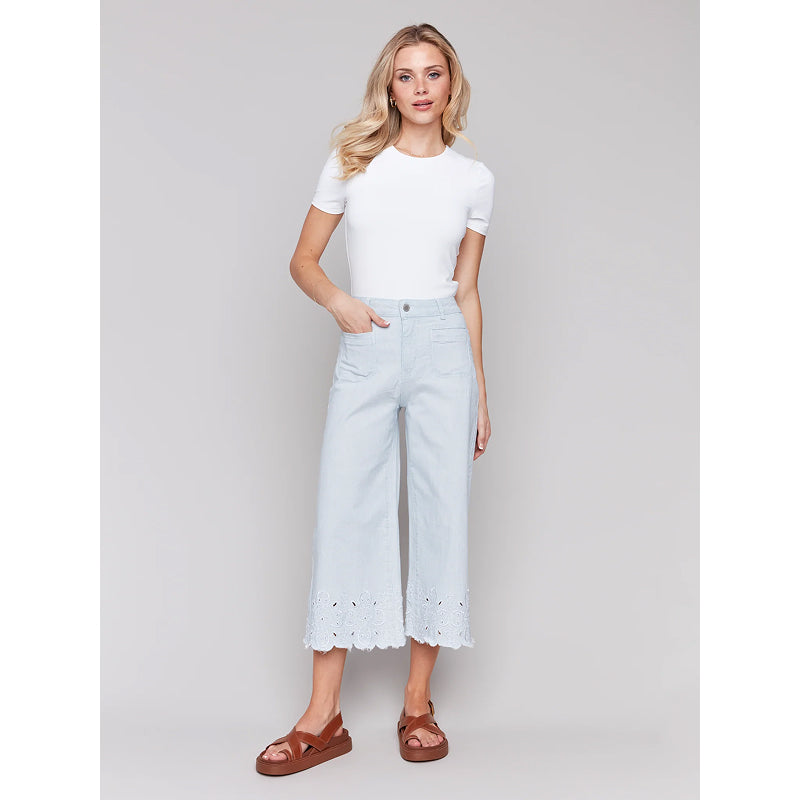 Renouvelez votre garde-robe avec le pantalon large court à ourlet festonné Charlie B, orné d'un élégant ourlet brodé pour un look chic et sophistiqué. Parfait en toute occasion, ce pantalon sublimera votre tenue grâce à son design élégant et sa coupe confortable. N'hésitez pas à ajouter cette pièce polyvalente et intemporelle à votre collection !