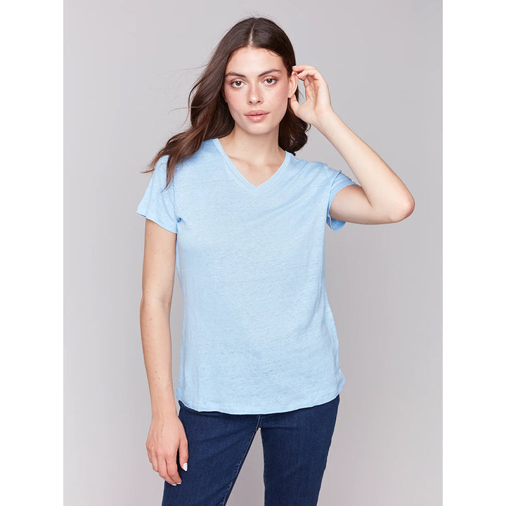 Optez pour un style et un confort sans effort avec la chemise à manches courtes et col en V de Charlie B. Confectionnée en lin de qualité supérieure et dotée d'un design intemporel, cette chemise apportera une touche de polyvalence à votre garde-robe. Avec ses manches courtes, son col en V et ses couleurs classiques, elle vous offre fraîcheur et tendance tout en étant durable. Faites confiance au savoir-faire artisanal de Charlie B pour une qualité irréprochable.
