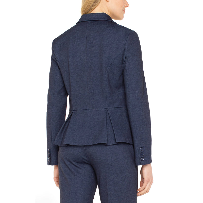 In a refined Navy Dusk, this blazer is tailored with a peplum silhouette that creates a flattering, feminine shape. The box-pleated hem adds subtle movement, while the polished design makes it easy to style from desk to dinner. A modern statement piece that elevates any look.