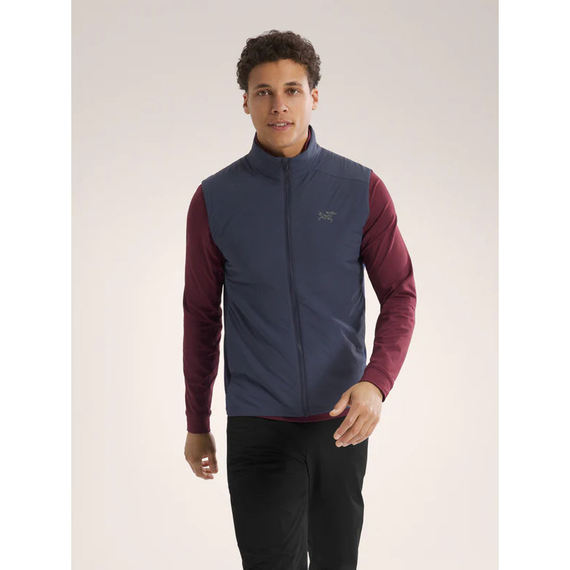 Utilisant des technologies avancées d'isolation et de matériaux, le gilet polyvalent Atom d'Arc'teryx pour homme excelle dans diverses saisons, paysages et activités. Son isolation synthétique Coreloft™ Compact fournit de la chaleur même lorsqu'elle est mouillée et résiste à des années d'utilisation, tandis que la coque Tyono™ 20 offre une résistance au vent et aux intempéries. La ventilation et la mobilité sont améliorées par les panneaux latéraux en polaire extensible, et le gilet se range facilement dans sa propre poche pour un rangement facile.