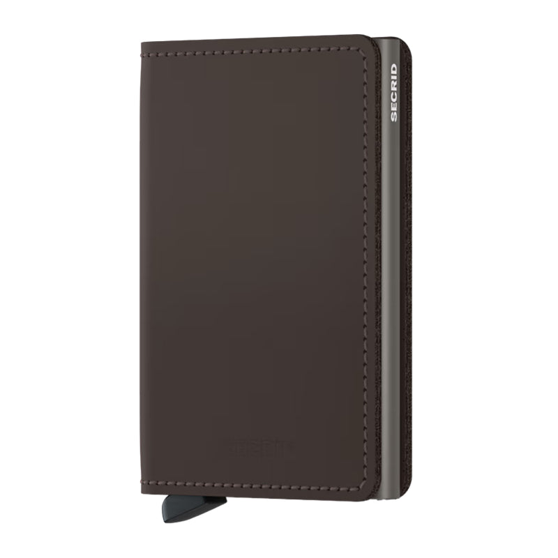 Its slim profile makes the Slimwallet fit perfectly into every pocket. The open exterior is cut extra wide to hold cards, banknotes and receipts.