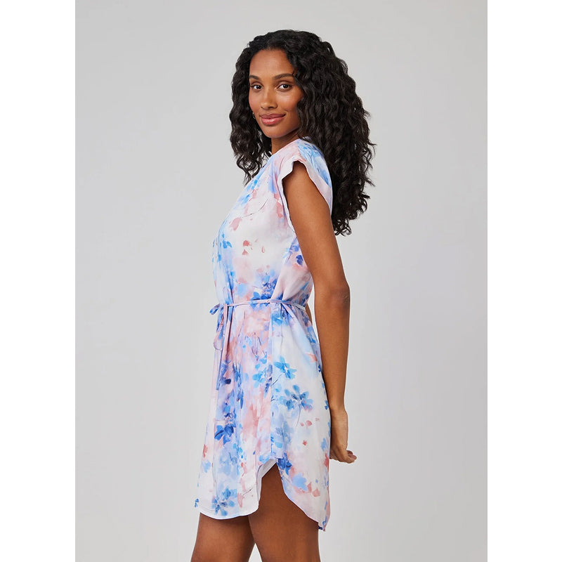 Introducing our Spring-ready Cap Sleeve Pullover Mini Dress in a cheerful, stunning garden mist print. Refresh your wardrobe with this lightweight, breezy dress that will add a pop of color and style to any occasion.