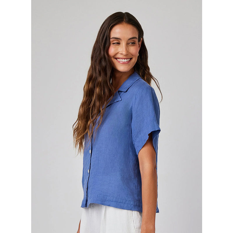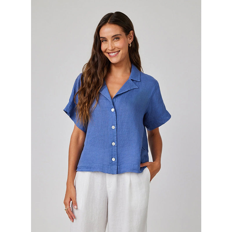 Introducing our Short Sleeve Flowy Button Down, in soft tissue linen for a luxurious feel. This flowy fit shirt offers a comfortable fit, perfect for staying cool and stylish in any setting. Elevate your wardrobe with this versatile and effortlessly chic piece.