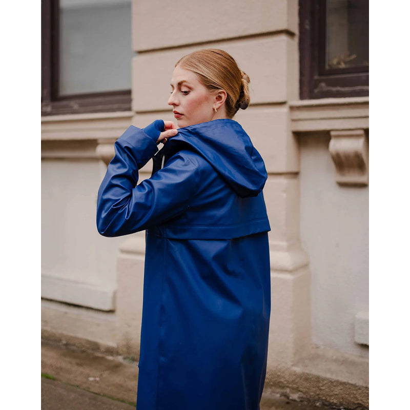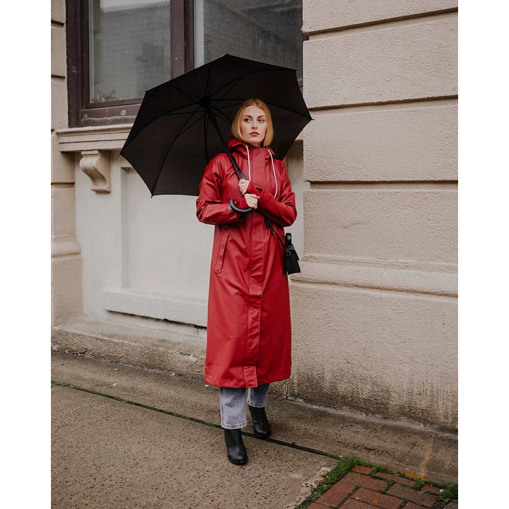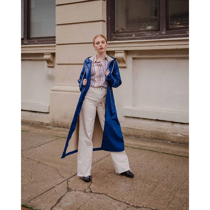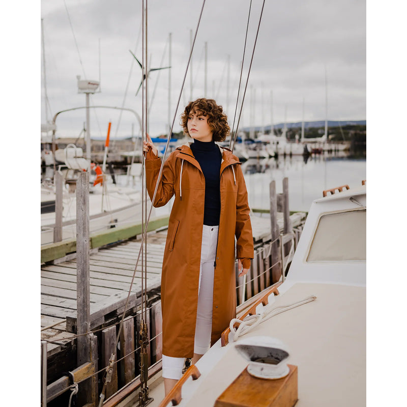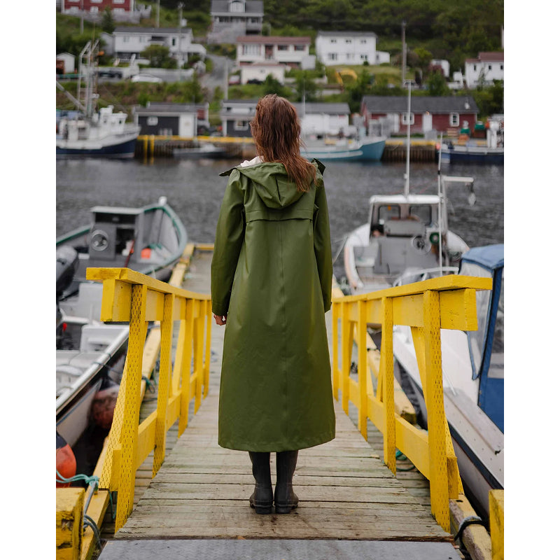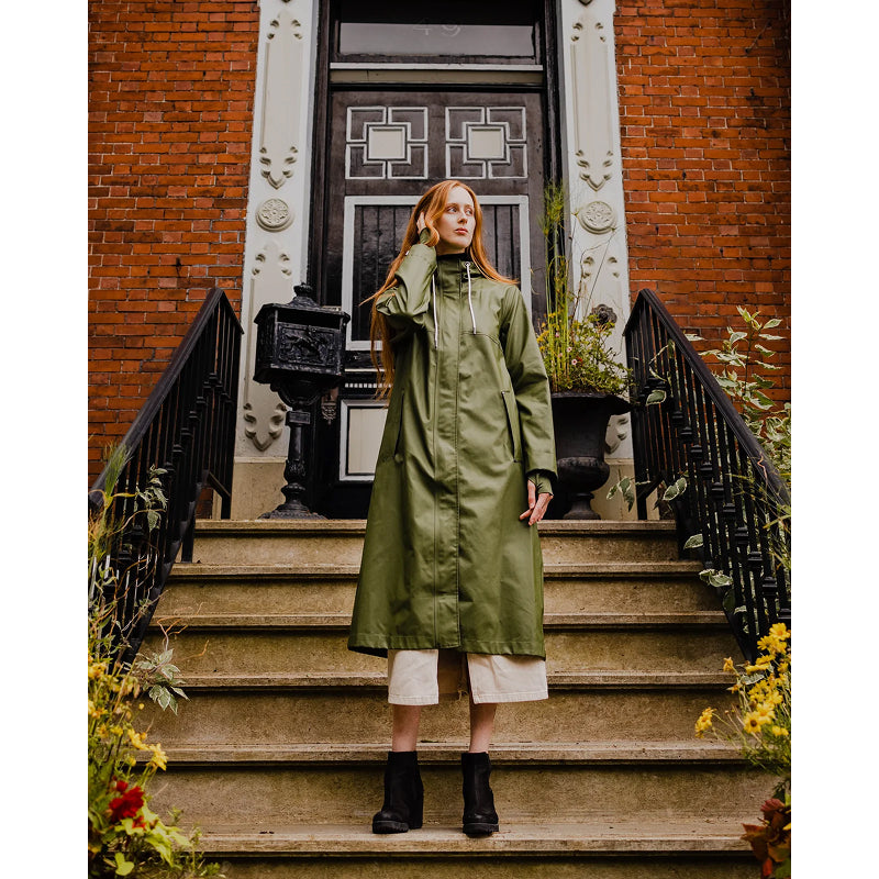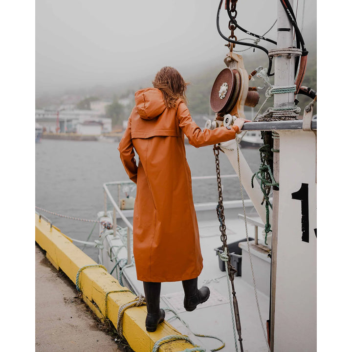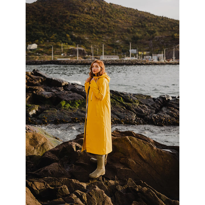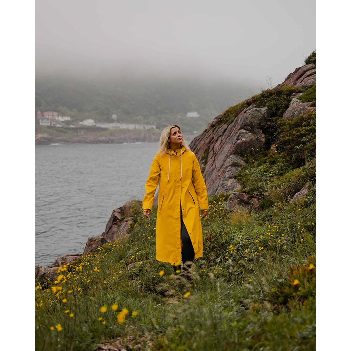 Expertly designed with meticulous attention to detail, the Mernini Raincoat is a full-length, lightweight and waterproof option that offers an A-line silhouette for enhanced room for outfit layering. Its traditional unlined design boasts modern features such as water-resistant wrist warmers and a magnetic front closure, making it the perfect choice for braving the relentless power of the North Atlantic wind and rain. A must-have for any strong woman.