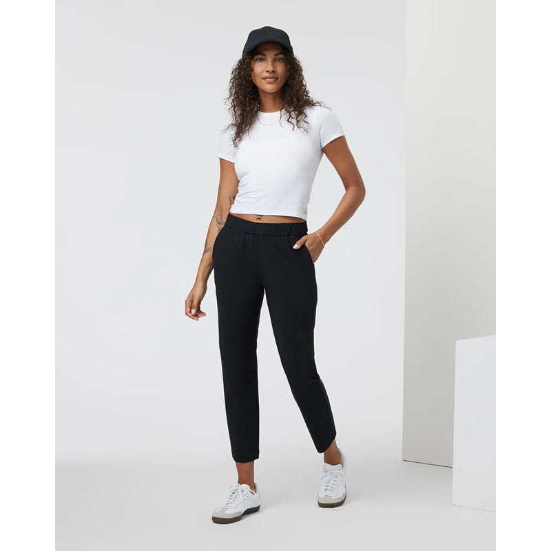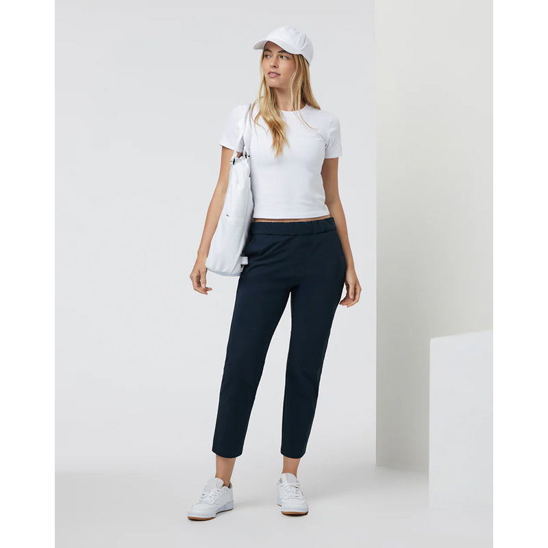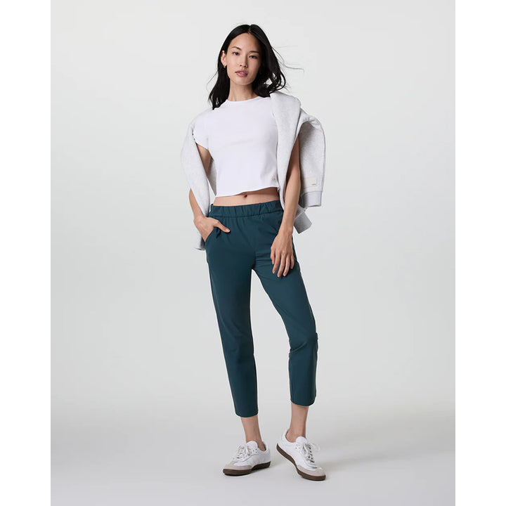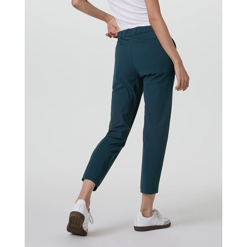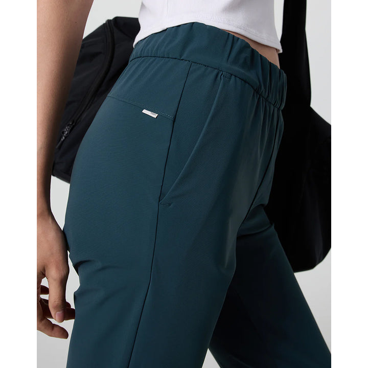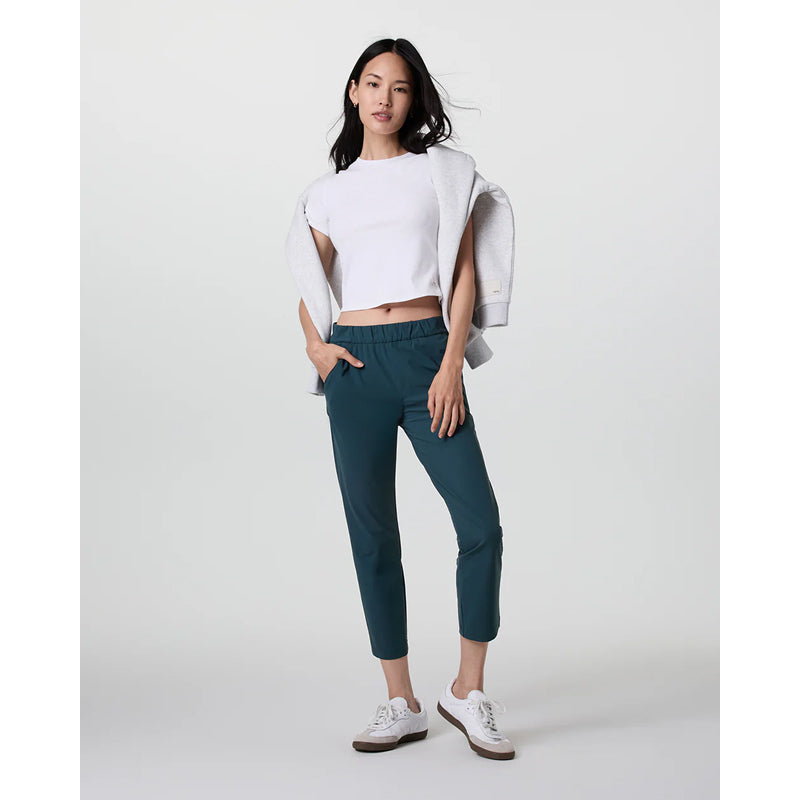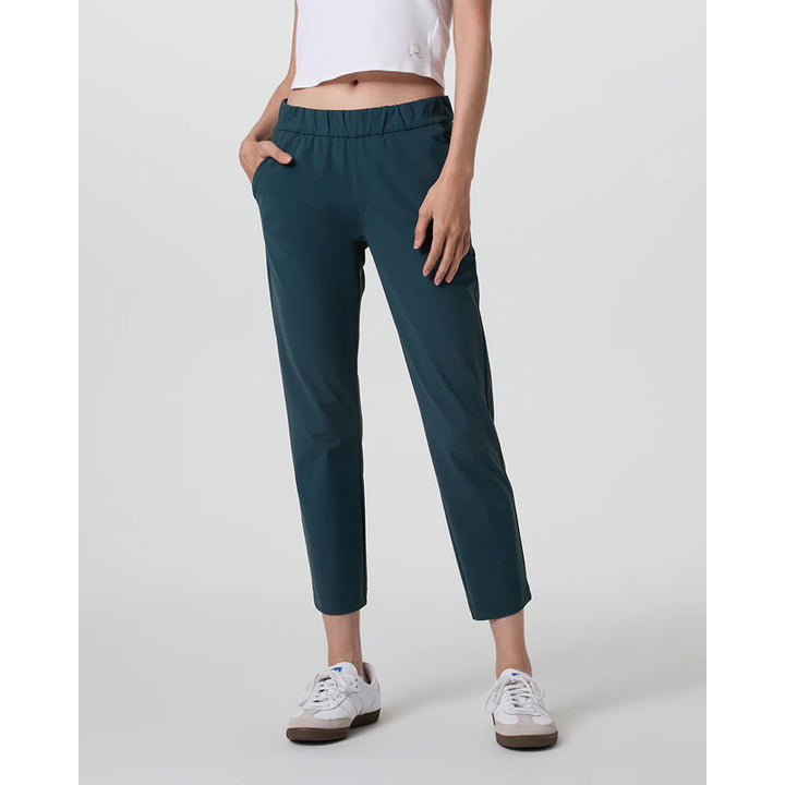 The Vuori Women's Miles Ankle Pant is designed with all the essential features for your daily excursions. Made from breathable recycled performance stretch knit, this pant includes convenient side-seam zip pockets, providing both comfort and functionality for any activity.